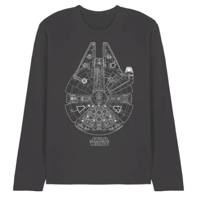 Star Wars Millenium Lines Unisex Long Sleeve T Shirt, Charcoal, Medium