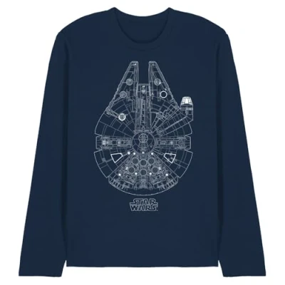 Star Wars Millenium Lines Unisex Long Sleeve T Shirt, Navy, Medium