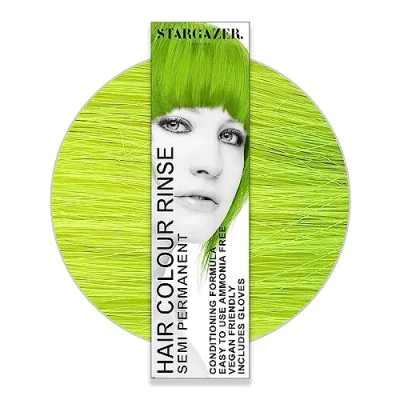 Long-Lasting Vibrant UV Light Reactive Lime Colour: Easy to apply strong UV-reactive lime green hair colour that can last up to 15 washes in pre-lightened hair and 8 washes in un-lightened hair. Gentle On Your Hair: Semi-permanent hair colour with a conditioner that is free from ammonia or peroxide so will not damage your hair. Includes Gloves: Includes gloves in each box so you can apply without getting your hands dirty. The bottle is enough to cover shoulder-length hair. A Good Player: The UK Manufactured formula is Vegan and cruelty-free. A Great History: The Stargazer semi-permanent hair dye has been sold in this great formula for over 25 years.