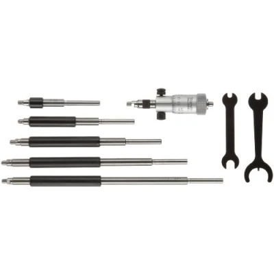 Rods marked with length and adjustable from 50 mm to 200 mm Micrometer head sits on shoulder of rods to lock in position, ensuring accuracy Hardened and ground anvils on 6 mm diameter solid rods, for accuracy Includes one 12 mm spacing collar Lightweight for ease of use