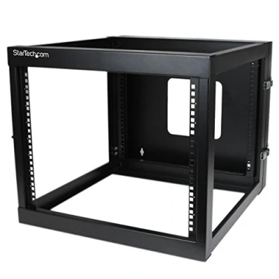 4-POST 8U HINGED WALL-MOUNT RACK: IT Server Rack with 19.8in (50.2cm) maximum mounting depth is ideal for installing network switches out of the way (for example high up on a wall) in your warehouse, office, server room or store location OPTIMIZED DESIGN: The Wall Mount Data Rack features a hinged open frame rack design that allows the entire frame to swing open for easy installation and maintenance; Unobstructed airflow helps to keep your Data / AV / IT equipment cool BUILT TO LAST: The 8U wall mount computer equipment rack offers a 4 post design for additional support of your equipment; Constructed of high-quality SPCC cold-rolled steel for strength and durability with a maximum weight capacity of 139lbs (63kg) FULLY ASSEMBLED: The hinged server rack ships fully assembled with all of the rack screws and cage nuts required to mount your equipment; Hinged Data Rack is TAA and EIA/ECA-310-E Compliant THE IT PRO'S CHOICE: Designed and built for IT Professionals, this 8U wall mounted network rack is backed for life, including free lifetime 24/5 multi-lingual technical assistance