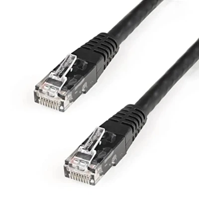HIGH PERFORMANCE CAT6 ETHERNET CABLE: 100% copper for error-free Multi Gigabit 1/2.5/5Gbps connections; 10Gbps up to 160'; Fluke patch cord tested to comply w/ANSI/TIA-568-2.D Category 6; ETL Verified POE SUPPORT: 24 AWG stranded copper conductors & UL rated wiring supports up to 100W for PoE devices like VOIP phone & security systems; IEEE 802.3bt & DTE power compliance reduces cable heating QUALITY CONSTRUCTION: ETL & UL certified wire; 50-micron gold-plated connectors prevent rust/corrosion to avoid costly network downtime; High quality PVC jacket resists bending or fraying damage EASY INSTALLATION: 8 foot molded patch cord is easy to connect into high density panels with many cables; Compatible w/Cat5e; Available w/Snagless boots for easy wiring conduit installation SPECS: Length: 8ft (2.4m) | Color: Black | 650 MHz Rated | Structure: 4 Pair UTP | RJ45 | Jacket: PVC | Wire Gauge: 24 AWG Copper | Wiring: ANSI/T568B | ETL Verified | Warranty: Lifetime