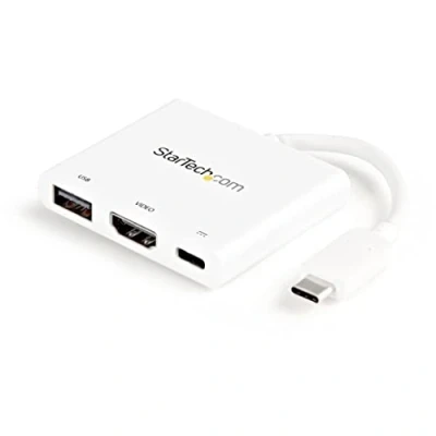 CONNECT TO 4K HDMI: This {white} USB C multiport adapter with HDMI lets you connect your USB-C laptop to a 4K UHD HDMI external monitor (4096 x 2160 resolution at 24Hz or 3840 x 2160 @ 30Hz). It’s the ideal accessory for a MacBook or other USB-C laptop. POWER AND CHARGE: The USB-C adapter with charging supports Power Delivery 2.0 (up to 60W), so you can use your laptop’s USB-C power adapter to power and charge your laptop. CONNECT A USB DEVICE: The all-in-one adapter lets you connect a peripheral device like a flash drive or mouse using the USB 3.0 (Type A) port. The USB ports is backward compatible so you can still connect your existing USB device. TRAVEL-FRIENDLY DESIGN: The compact design lets you carry the portable USB C HDMI multiport adapter with you wherever you go. INDUSTRY-LEADING SUPPORT: StarTech.com offers a 3-year warranty & free lifetime technical support on this USB Type C multiport adapter. With over 3000 products supporting 200+ technologies & connectors globally, StarTech.com makes hard-to-find easy.