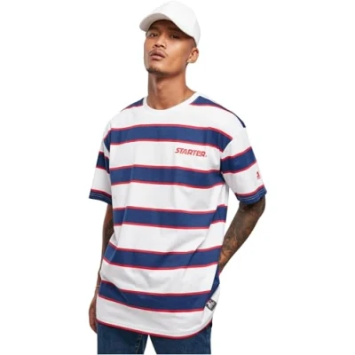 Colourful striped shirt for men from STARTER The stripes are divided into three sections in two colours Logo print on the chest and sleeves, web patch on the hem Casual oversize cut for an all-round successful streetwear outfit Visit the STARTER BLACK LABEL Store for even more stylish, sporty streetwear and accessories