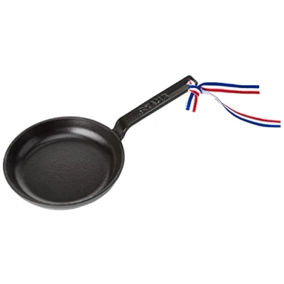 Mini cast iron frying pan with hanging loop in the handle Ideal for savoury or sweet individual servings, appetisers and desserts Matte black enamel interior helps to develop great flavour, is scratch resistant and easy to clean Suitable for use in the oven, under the grill and on all hob types including induction Lifetime warranty for domestic use against defects in manufacture and materials; made by STAUB in France