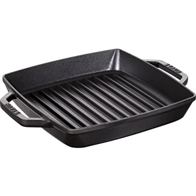 Grill pan for the grilling of meat, fish and vegetables Two short handles for easy manoeuvring Matte black enamel cooking surface helps to develop great flavour, is scratch resistant and easy to clean Suitable for use on all hob types including induction, and can be used under the grill and in the oven Lifetime warranty for domestic use against defects in manufacture and materials. Made by STAUB in France