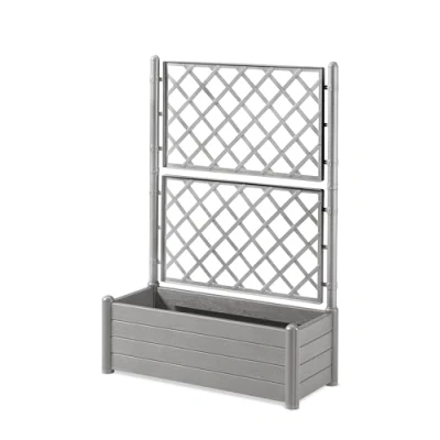 #Versatile and modular exterior;#Wood effect finish. ;#Equipped with a draining base that allows for proper watering of flowers and plants.