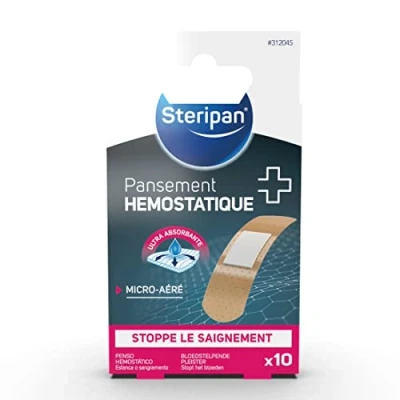 Care and protection in complete safety. Steripan has been providing the whole family with a full range of para-pharmaceutical products for 25 years. This dressing is impregnated with active ingredient m•doc™ and quickly stops bleeding from minor cuts. Thoroughly clean and dry the wound. Apply the dressing by centring it on the wound and pressing on the edges. Replace with a new dressing if necessary. If the bleeding persists, consult a doctor. Medical device class IIa - CE - single use.