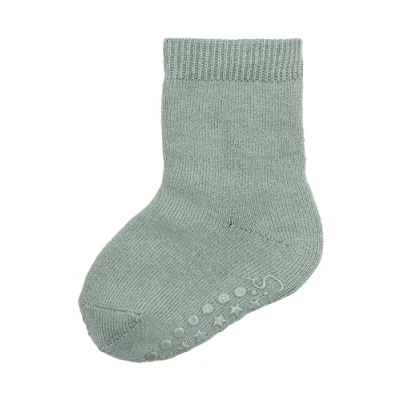 Sterntaler ABS wool socks, children's stopper socks with inner lining, motif on sole, crawling baby and Stone Green, 26