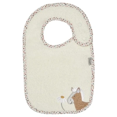 Bib press stud horse sunny, made of absorbent cotton, with practical press stud closure on the shoulder, cute appliqué, floral piping