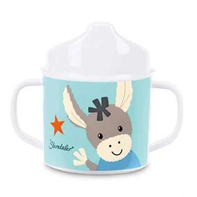 Practical mug with drinking attachment and non-slip base for babies, beautiful motifs with Emmi donkey For everyday use: cup with two handles for a firm hold, ideal for your first drinking attempts High-quality material: cup: 100% polypropylene; lid: 65% polypropylene, 35% polyethylene; insert: 80% polypropylene, 20% polyethylene + silicone, food safe Easy to clean in the dishwasher Box contents: 1 Sterntaler mug with drinking attachment, Emmi donkey, age: for babies from 6 months, multi-coloured