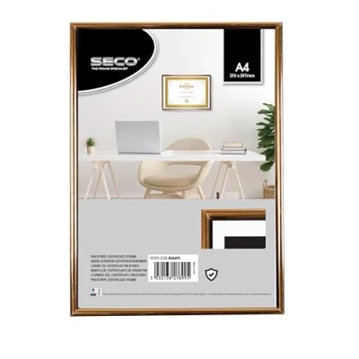 Stewart Superior A4 Pin Stripe Certificate Frame with Perspex Safety Glass Black/Gold
