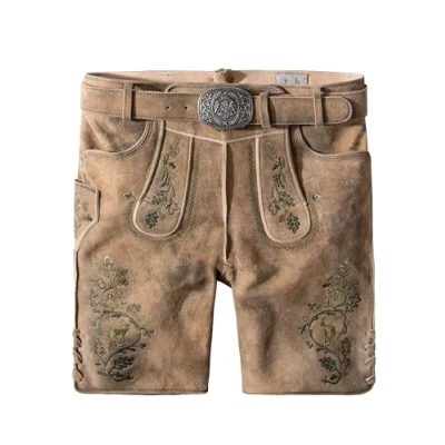 Traditional design – the men's traditional leather trousers Girgl combine classic costume elements with a modern cut, which gives you the perfect look at any party and attracts everyone's attention. High-quality leather – made from 100% suede leather, these durable leather trousers offer the highest wearing comfort and excellent quality even for several years Authentic and elegant – elaborately crafted leaf embroidery, an ornate belt design with clasp and handmade antique colouring give the trousers an individual character that highlights the traditional charm. Perfect fit – thanks to the lacing on the back of the waistband, the width can be individually adjusted, which guarantees you a perfect fit and even higher wearing comfort for several hours Tradition and quality: Stockerpoint combines traditional craftsmanship with timeless design. Whether elegant dirndl, blouses, leather trousers or shirts - we are your companion for high-quality traditional fashion