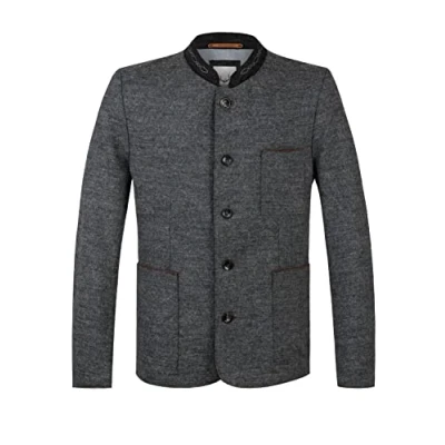 Traditional Clement jacket from Stockerpoint Classics. The fashionable, casual costume jacket gets traditional accents thanks to the light, mottled Loden quality. Refined, lasered buttons and a filigree embroidered stand-up collar round off the elegant appearance. The open edges skilfully underline the fashionable design. The classic, straight cut with patch pockets guarantees a very good fit and a comfortable fit. Refined, lasered buttons complete the elegant appearance. The jacket is the ideal combination partner with our leather trousers and jeans.