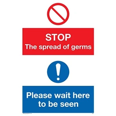 STOP germs PLEASE wait here to be seen sign Plastic Rigid 3mm