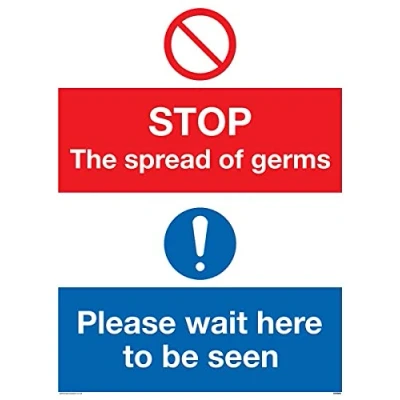 STOP germs PLEASE wait here to be seen sign Vinyl/Sticker