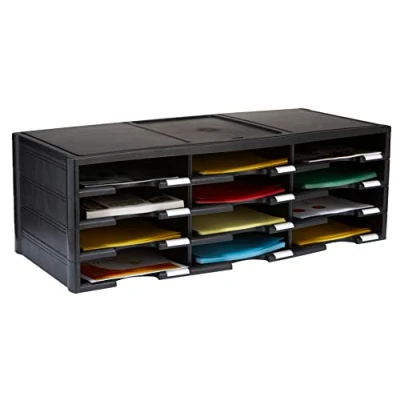 Storex 12 Compartment Literature Organizer/Document Sorter, Black (61602U01C)