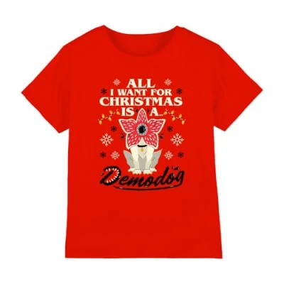 Stranger Things Demodog Christmas Kids T Shirt, Red, 9 11
