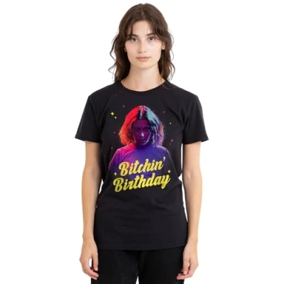Stranger Things Eleven Bitchin' Birthday Ladies T Shirt, Black, Large