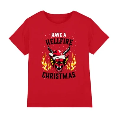 Stranger Things Hellfire Christmas Kids T Shirt, Red, 7 8