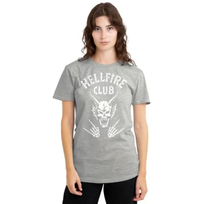 Stranger Things Hellfire Club Bones Ladies T Shirt, Athletic Heather, Large