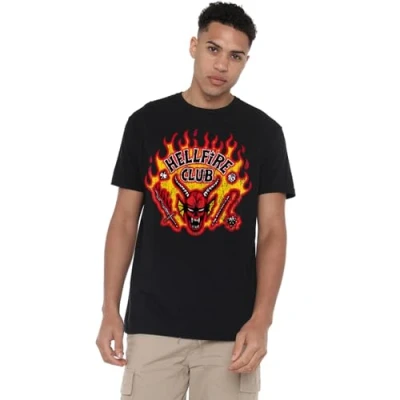 Stranger Things Hellfire Flames Unisex T Shirt, Black, XX Large