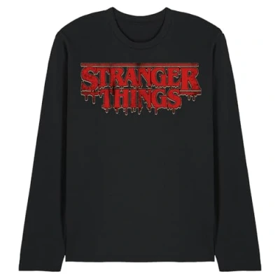 Stranger Things Retro Drippy Logo Unisex Long Sleeve T Shirt, Black, Large