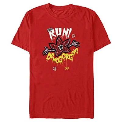 Stranger Things Run Away Organic Short Sleeve T Shirt, Red, S