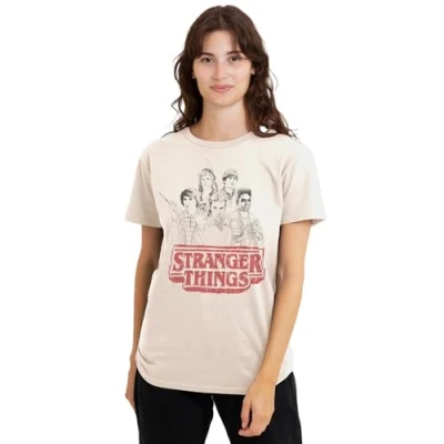 STRANGER THINGS - SEASON FIVE LADIES T-SHIRT FOR WOMEN: Crafted from premium ringspun cotton, our T-shirts are the epitome of timeless style. Embrace your individuality with a look as distinct as you are. Created for everyday wear, our tees feature a breathable all-season mid-weight weave, ensuring comfort in a versatile tagless design. Beyond ordinary, our short-sleeve tee is built to last. VERSATILE FIT: Whether you're an icon, influencer, or a myth in the making, discover a facet for every version of yourself. Pre-shrunk for the perfect fit, our tees are meant to be worn daily. With a crew neckline, short sleeves, regular silhouette, and straight hemline, this top is designed for comfort. Casual and classic, it's the ideal choice for any occasion. Only good vibes here. OFFICIALLY LICENSED - Discover exeptional style with our officially licensed pop culture designs! Created by our in-house graphic art team, each piece is a proud representation of craftsmanship, meticulously designed and printed in the UK. Showcase your favorite characters and themes, making every wear a statement of your unique style! EFFORTLESS CARE: From school and work to hanging out with mates, our classic women's tee is tailored for the real world. No complicated care instructions – simply wear, wash, repeat. Launder cold and tumble or hang dry to maintain the longevity of your new favourite shirt. PERFECT GIFTING OPTION: Ideal for sharing the love, our thoughtfully crafted and vividly rendered T-shirts are perfect for any superfan. Kit your loved ones out for their next birthday, holiday, themed event, Christmas or special occasion.