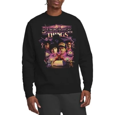 STRANGER THINGS - SEASON FOUR UNISEX SWEATSHIRT: Express your authenticity with a look as unique as you are. Designed for daily wear, our sweatshirt showcases a breathable all-season mid weight weave in a versatile tagless top that pairs with everything from freshly pressed jeans, to your favourite sweatpants. Beyond basic, our long-sleeve sweatshirt is made to go the distance. FIT FOR EVERY SOUL: Icon, influencer, or myth-in-the-making... find a facet for every version of you. Pre-shrunk for the perfect fit, our sweatshirt was born to be worn. Boasting a crew neckline, ribbed cuffs and hem, and a standard silhouette, this officially licensed top is made to be lived in. Casual and classic, it's the ideal topper for anything your wardrobe dish out. Only good vibes here. OFFICIALLY LICENSED - Discover exeptional style with our officially licensed pop culture designs! Created by our in-house graphic art team, each piece is a proud representation of craftsmanship, meticulously designed and printed in the UK. Showcase your favorite characters and themes, making every wear a statement of your unique style! EFFORTLESS CARE: From school and work to hanging out with mates, our sweatshirt is tailored for the real world. No complicated care instructions – simply wear, wash, repeat. Launder cold and tumble or hang dry to maintain the longevity of your new favourite pullover. PERFECT GIFTING OPTION: Ideal for sharing the love, our thoughtfully crafted and vividly rendered sweatshirts are perfect for any superfan. Kit your loved ones out for their next birthday, holiday, themed event, Christmas or special occasion.