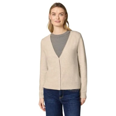 Street One Cosy V Neck Cardigan Cotton Beige Mel. 34