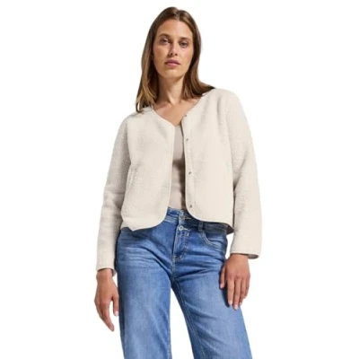 Street One Ladies Teddy Button Down Jacket, Tusk Cream, 20
