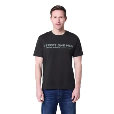 Street One MEN Basic T Shirt with Logo Print Black S
