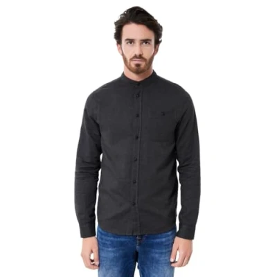 Street One MEN Flannel shirt with light stand-up collar, button placket and chest pocket A casual companion for leisure and work in melange look made of cotton