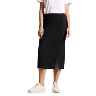 Skirt wall length Elastic waistband at the back Front slit in hem Wrap look Comfortable and elastic