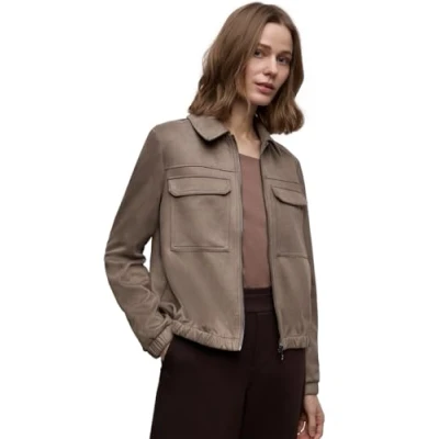 Women's jacket Soft velour quality Shirt collar Elasticated hem Dimensions for EU size 38 approx. Chest width: 56 cm, sleeve length: 62.5 cm, bottom width: 61 cm