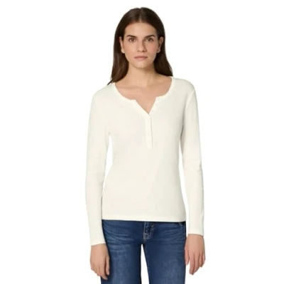 Long sleeve shirt Figure-flattering ribbed structure Crew neck with decorative button plack Cotton quality with stretch content Dimensions for EU size 38 approx. Front length: 62 cm, bottom width: 44 cm, chest width: 42 cm, arm length: 61 cm