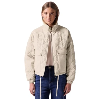 Women's jacket Stand-up collar Long sleeve Patch pockets Drawstring hem
