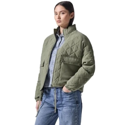 Women's jacket Stand-up collar Long sleeve Patch pockets Drawstring hem