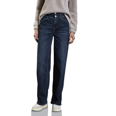 Street One Women's Wide Leg Jeans, Dark Blue Soft Wash, 31W / 32L