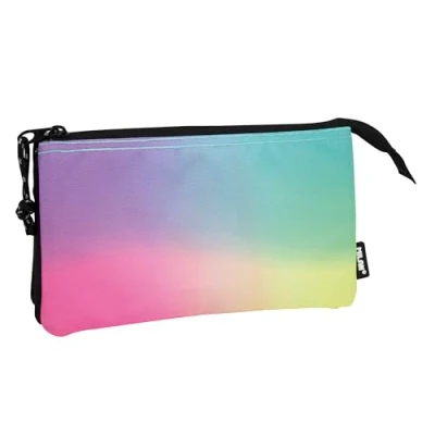 Case with 3 zippers and 5 compartments, to organize and distribute the contents. Sunset Series, Black A combination of degraded colors inspired by the sunset, accompanied by black and white details. Zipper pulls with rope. 'ripstop' outer fabric: lightweight and resistant to tear and tears. It uses a special technique that weaves thick reinforcement threads at regular intervals in a crisscross pattern. Composition: outer and inner polyester lining. Fabric composition: outer and inner lining made of polyester. Dimensions: 22 x 12 x 4 cm.
