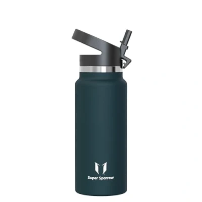 Super Sparrow Water Bottle Insulated 1000ml Wide Mouth Metal SwivelSip Flask BPA Free, Leak Proof Ergonomic Straw Bottles for Work, Gym, Travel, Sports