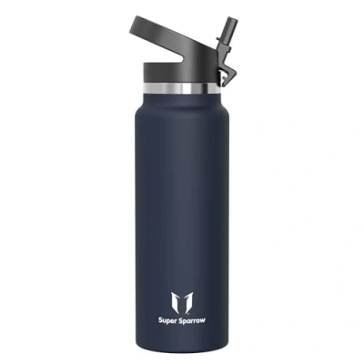 Super Sparrow Water Bottle Insulated 1200ml Wide Mouth Metal SwivelSip Flask BPA Free, Leak Proof Ergonomic Straw Bottles for Work, Gym, Travel, Sports