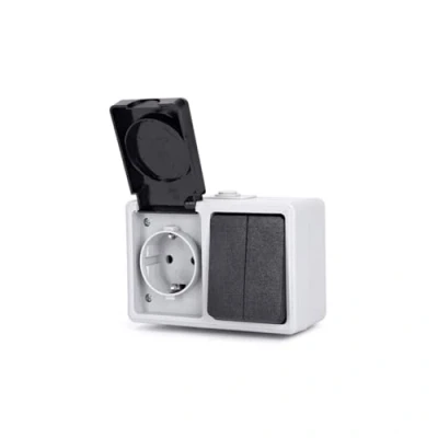 Surface Switch and Socket 2 Keys Way Gray IP54 Mount with Splash Guard