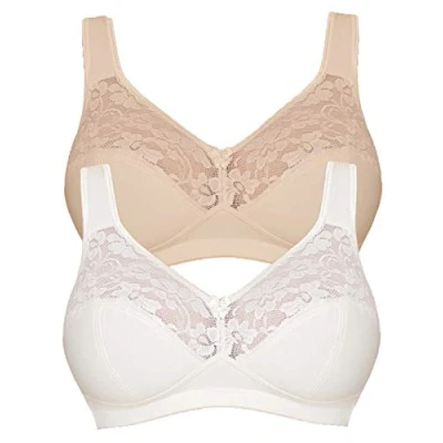 Three-part cup: the lower cup and bridge is made of pleasant basic goods and the design is clear, but deliberately takes back Closure with 3 rows: the closure of the women's bra has 3 rows to close, so you can tighten it Material and closure: the women's bra is made from 76% cotton, 18% polyamide and 6% elastane. The clasp is made of hook and eye International products have separate terms, are sold from abroad and may differ from local products, including fit, age ratings, and language of product, labeling or instructions.