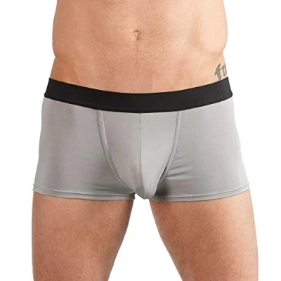 Grey trousers made of soft microfibre with push-up effect and black woven elastic waistband. Material: 90% polyester, 10% elastane.
