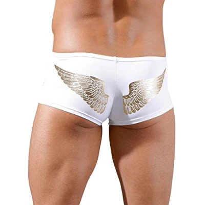 Scarce men's pants Made of high quality microfibre With zip on the bag Angel wing print on the buttocks Colour: white / gold