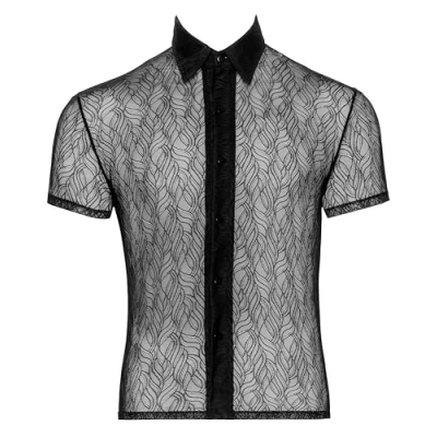 Tight lace shirt with half sleeves Exciting transparent With collar and full button placket Soft and stretchy for comfort