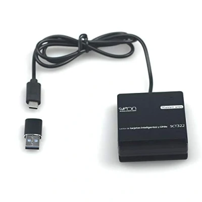 ID reader compatible with the new DNI 4.0 USB Type C connection (includes USB Type A adapter) Compatible with Windows and MacOS USB powered