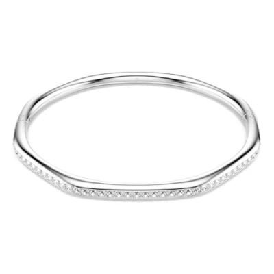 Size: M; Length: 17 cm; Inner Diameters: 5.8 x 5 cm; Motif Size: 0.4 x 6.4 cm; Clasp Type: Tilt-Up Mesmerising Design: This rhodium-finished bracelet features a slender octagonal design accented with a shimmering row of clear round-cut crystals placed in prong settings Bold Style: Blending refined craftsmanship with radiant sophistication, this dazzling bangle elevates your look with a striking touch of glamour for both everyday wear and evening occasions Joyful Extravagance: Wear this head-turning statement piece on its own or pair it with other chic items from the Swarovski Dextera collection for a look that exudes pure confidence Designed to Last: Swarovski jewellery maintains its brilliance when simple care practices are observed; remove before contact with water, lotions or perfumes and polish with a lint-free cloth Items Delivered: 1 x Swarovski Dextera octagon bangle bracelet with clear round-cut crystals in a rhodium-finished setting, size M; 1 x Swarovski bracelet box